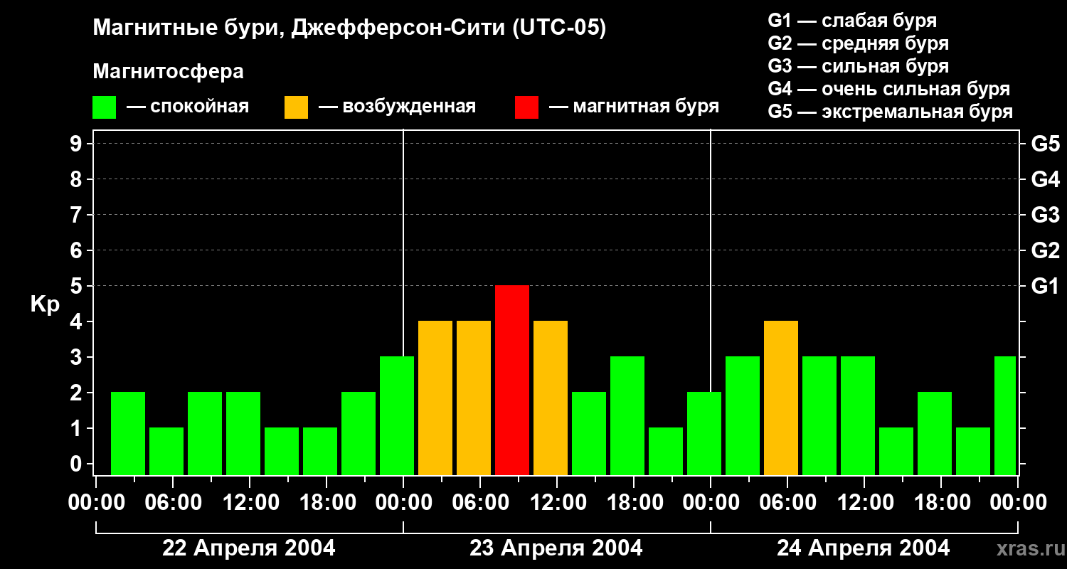 Магнитные бури Джефферсон-Сити 24 апреля 2004 года