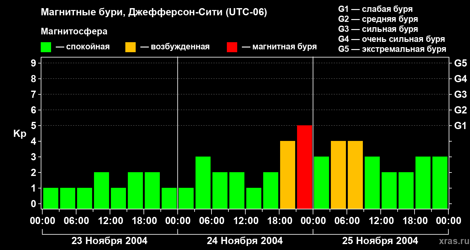 Магнитные бури Джефферсон-Сити 25 ноября 2004 года