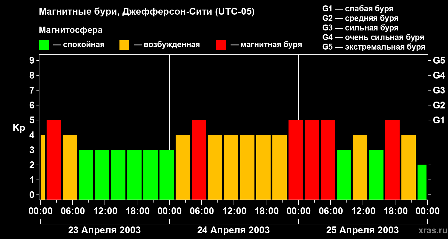 Магнитные бури Джефферсон-Сити 25 апреля 2003 года