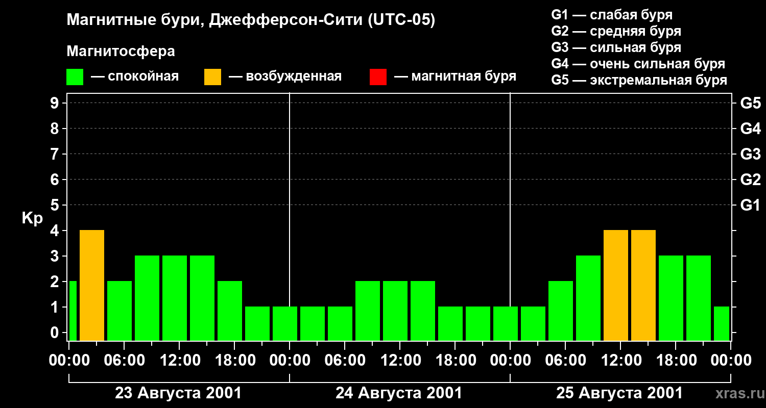 Магнитные бури Джефферсон-Сити 25 августа 2001 года