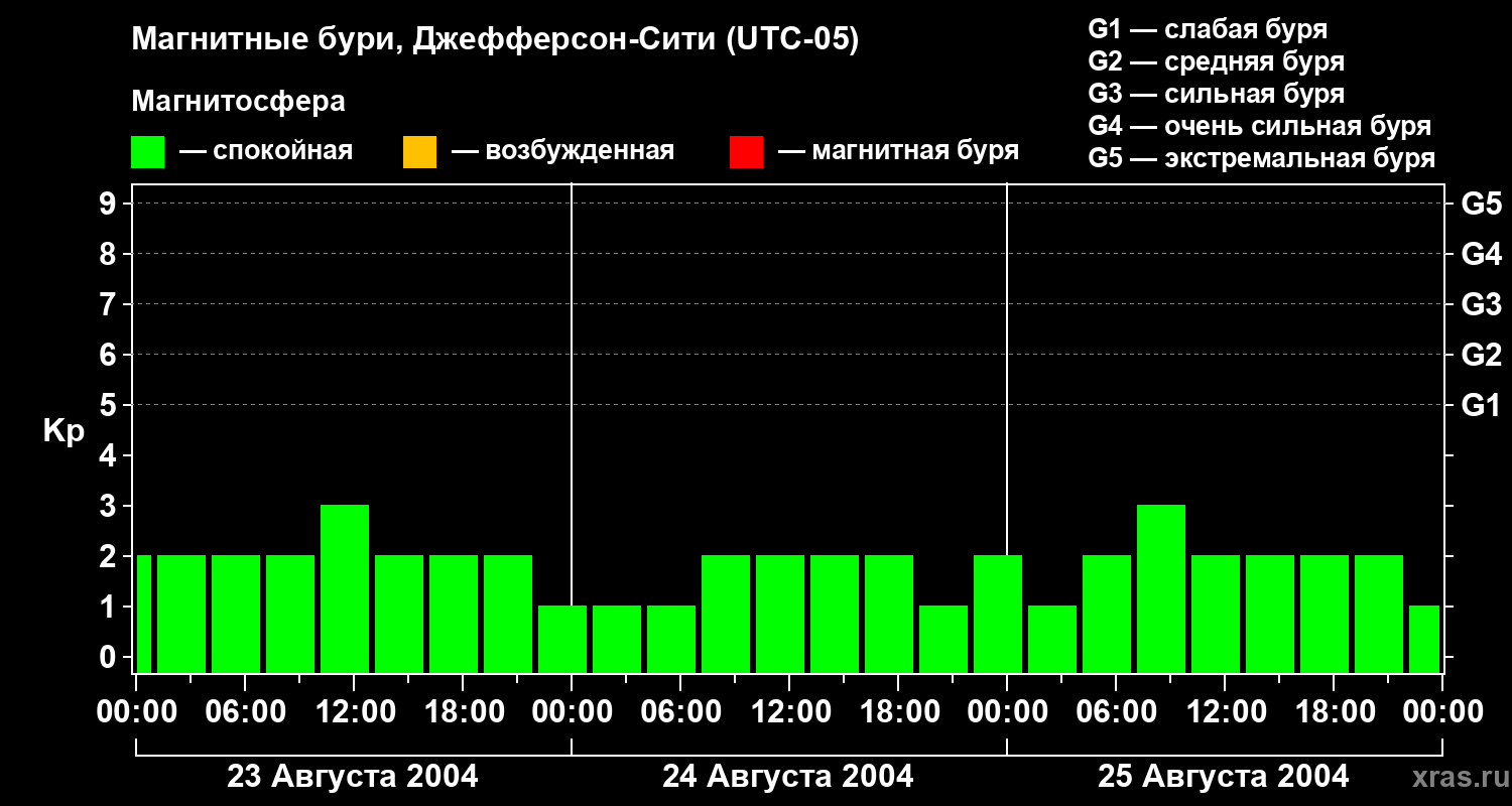 Магнитные бури Джефферсон-Сити 25 августа 2004 года