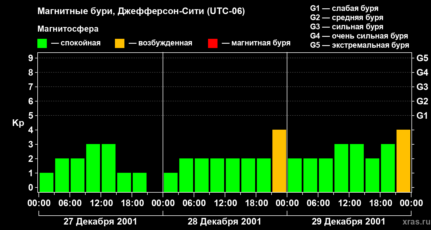 Магнитные бури Джефферсон-Сити 29 декабря 2001 года