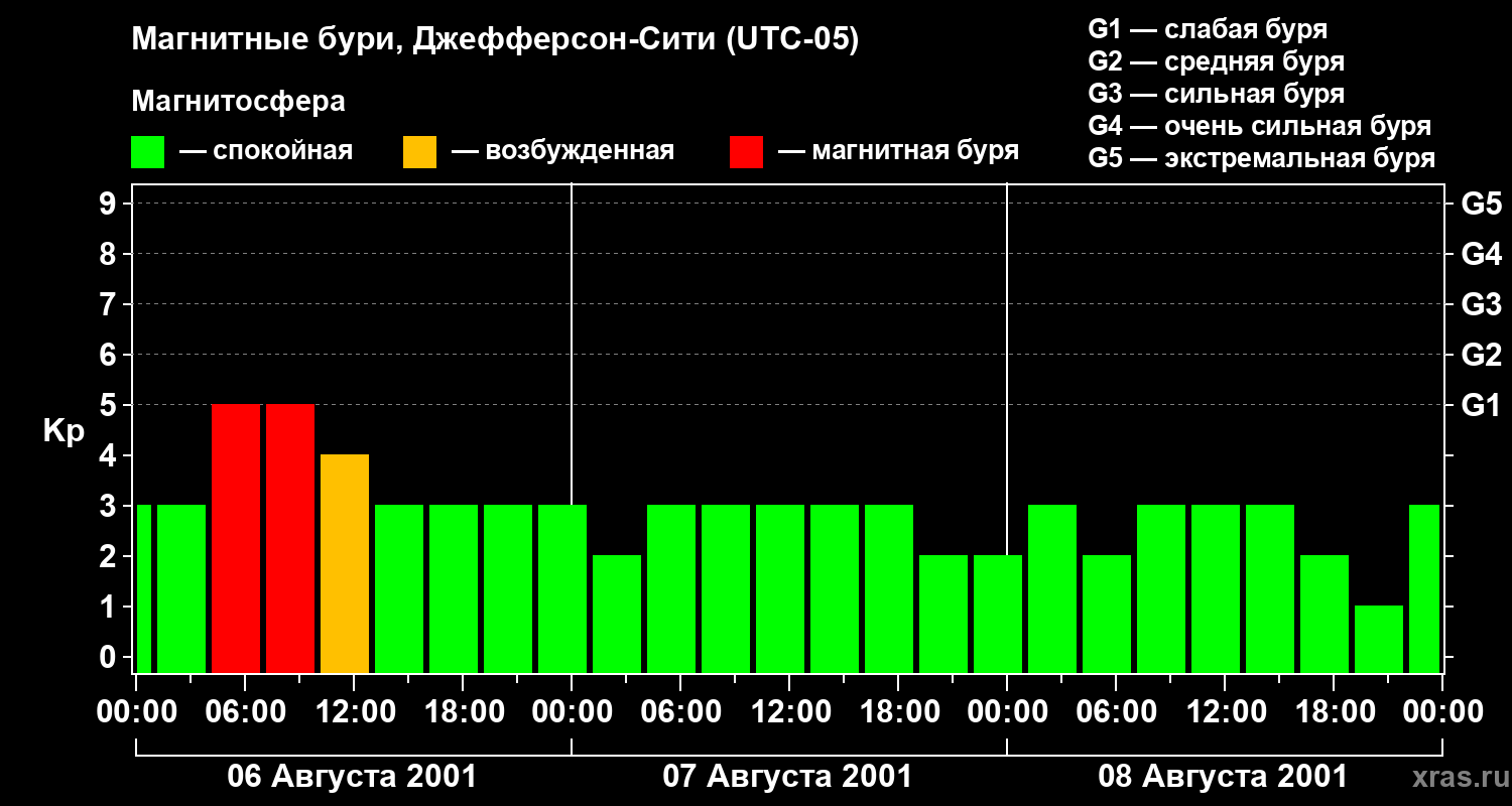 Магнитные бури Джефферсон-Сити 8 августа 2001 года