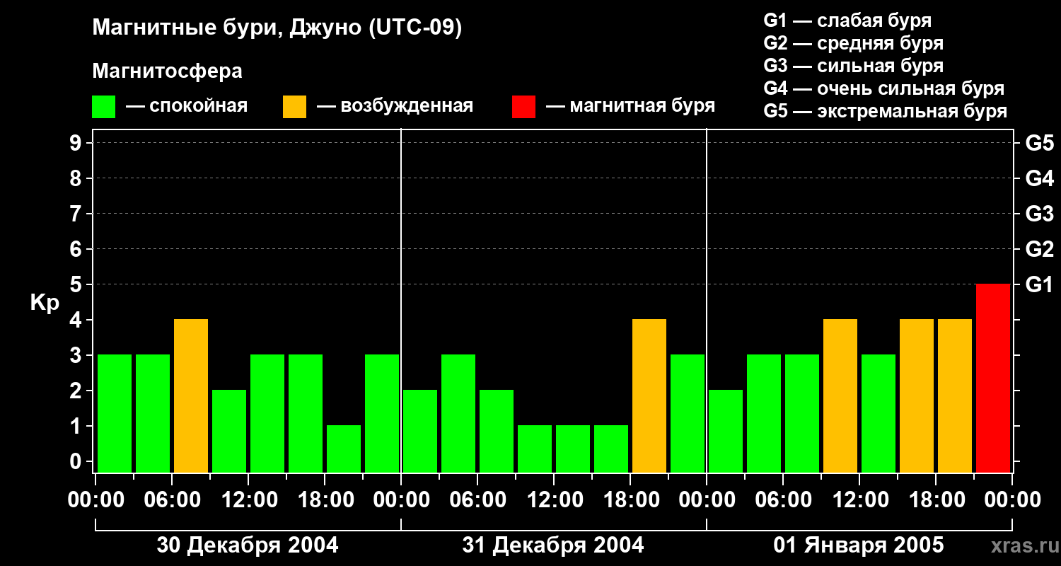 Магнитные бури Джуно — 1 января 2005 года