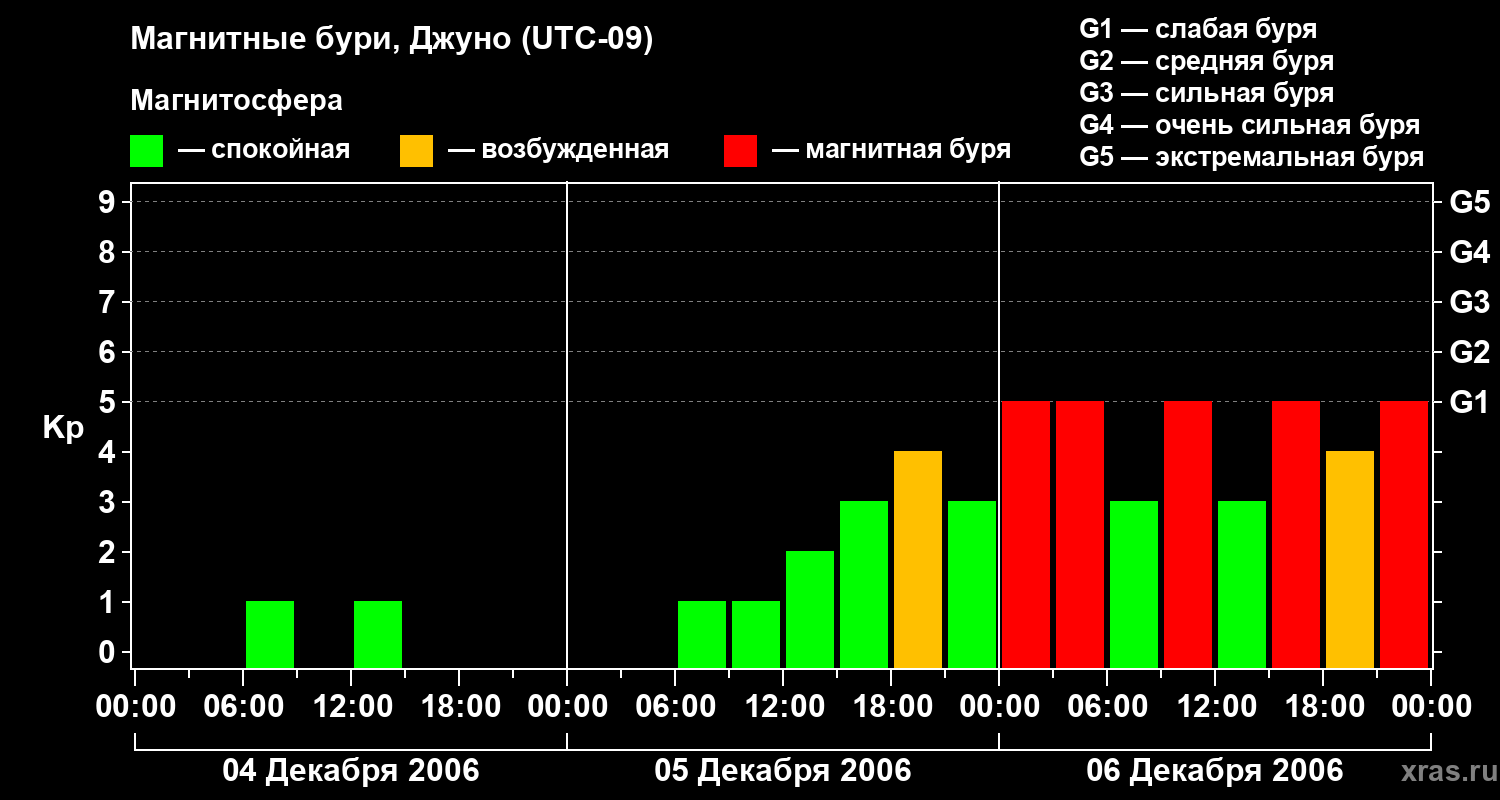 Изменения геомагнитного индекса Kp с 4 по 6 декабря 2006 года для средних широт