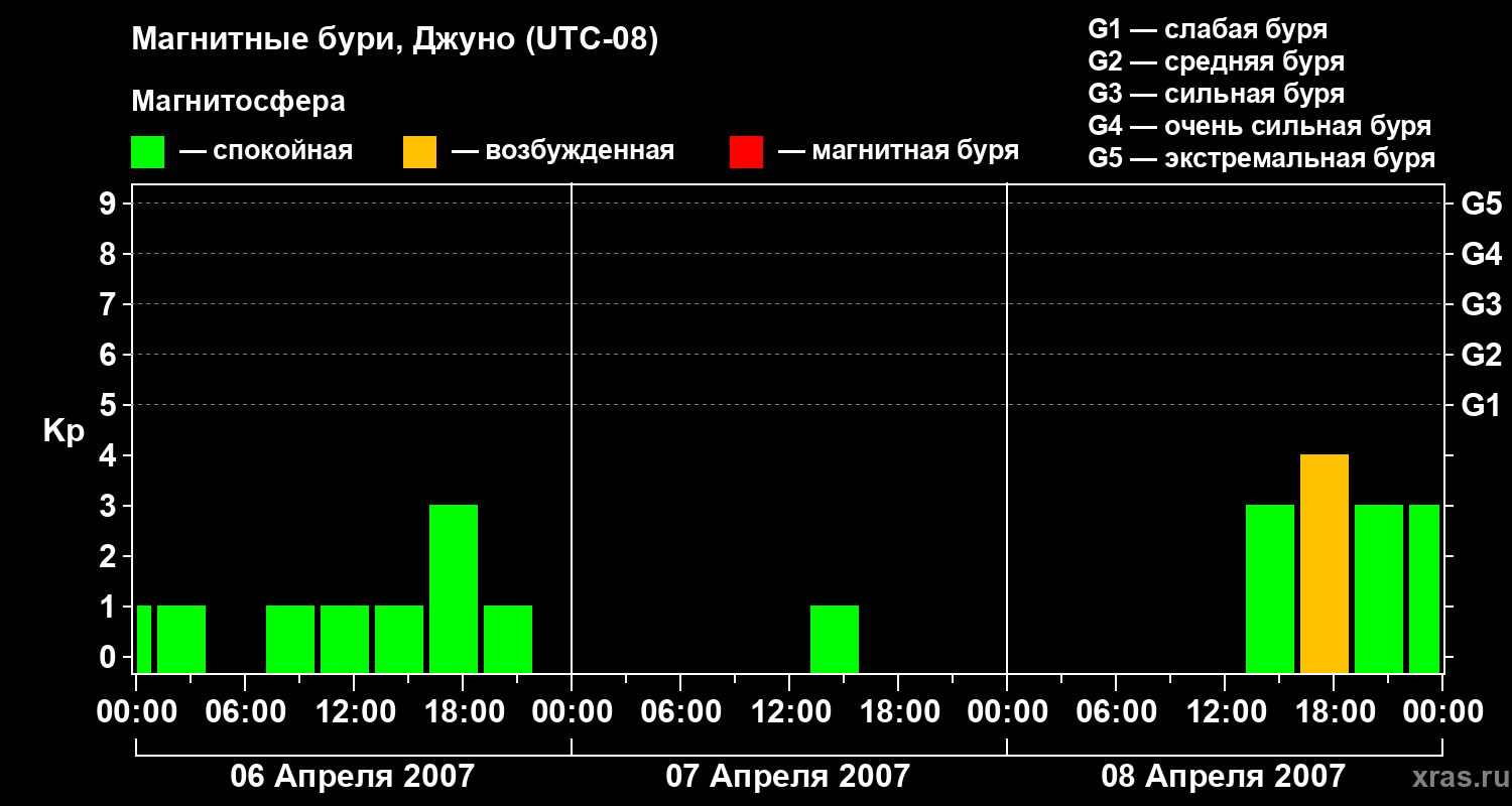 Магнитные бури Джуно 8 апреля 2007 года