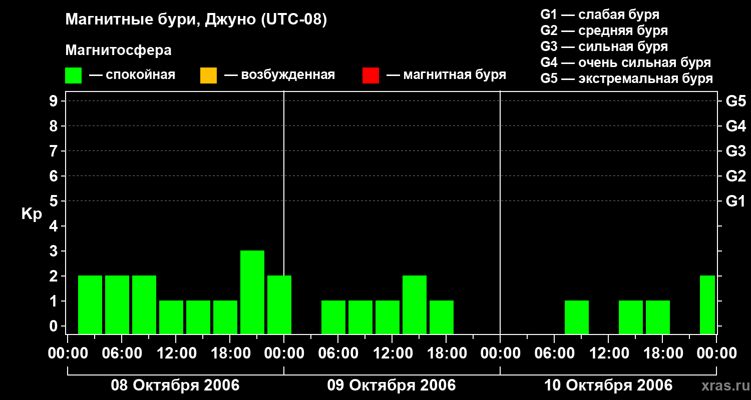 Изменения геомагнитного индекса Kp с 8 по 10 октября 2006 года для средних широт