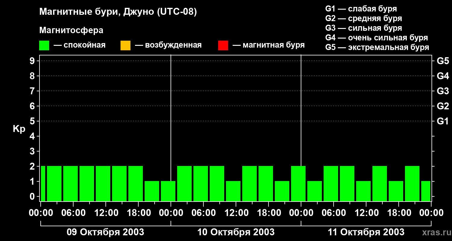 магнитосфера Земли была спокойной (Kp = 2.00)