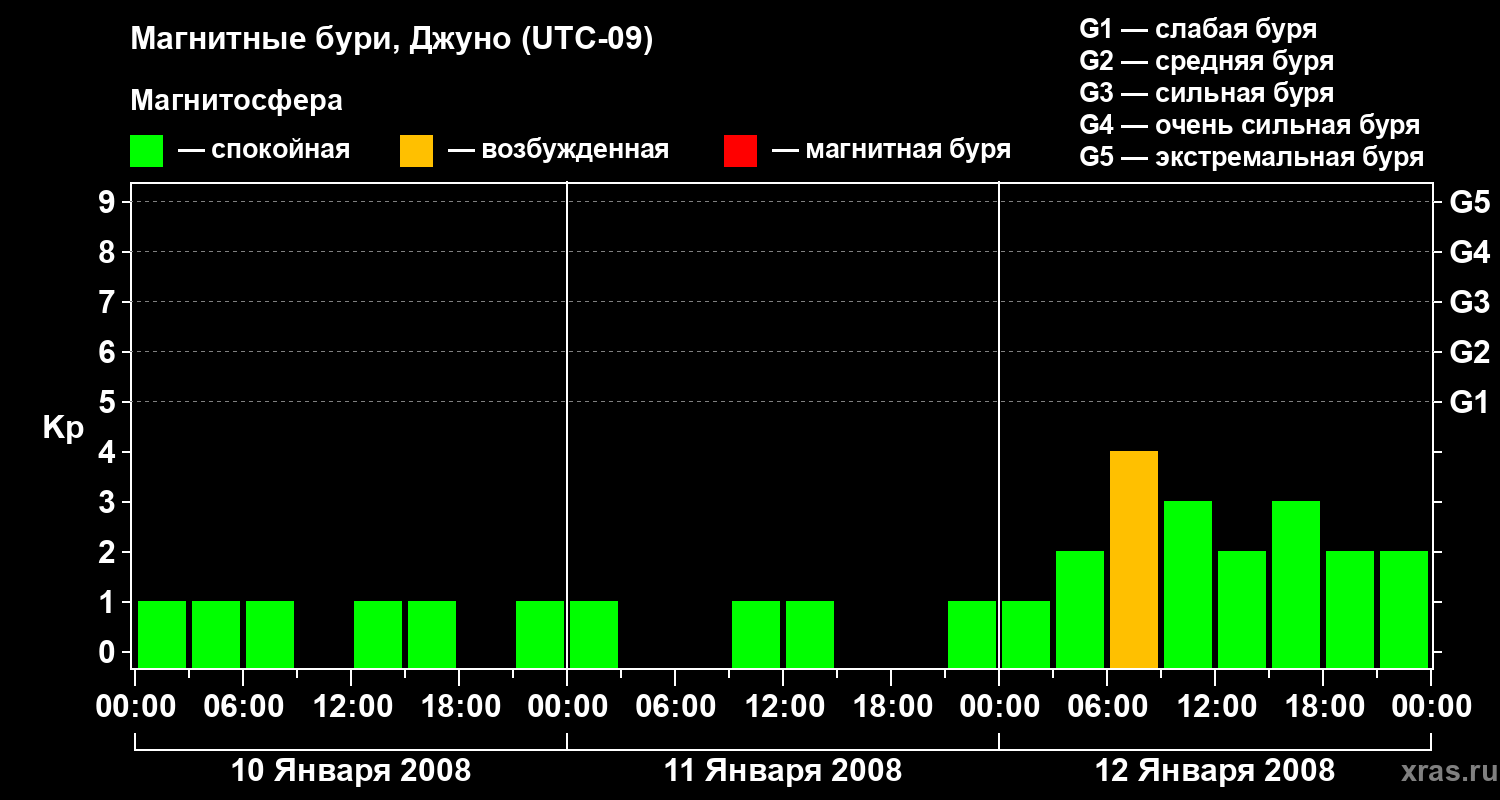 Магнитные бури Джуно 12 января 2008 года