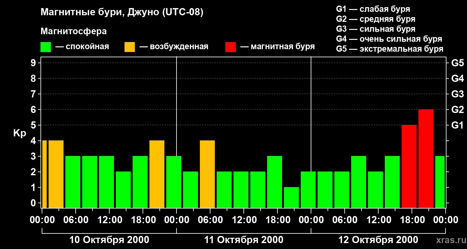 Магнитные бури Джуно 12 октября 2000 года