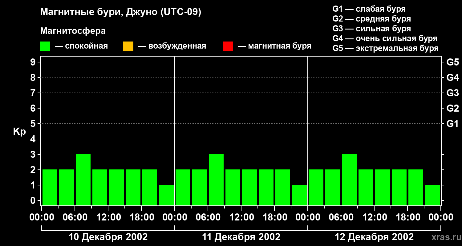 Изменения геомагнитного индекса Kp с 10 по 12 декабря 2002 года для средних широт