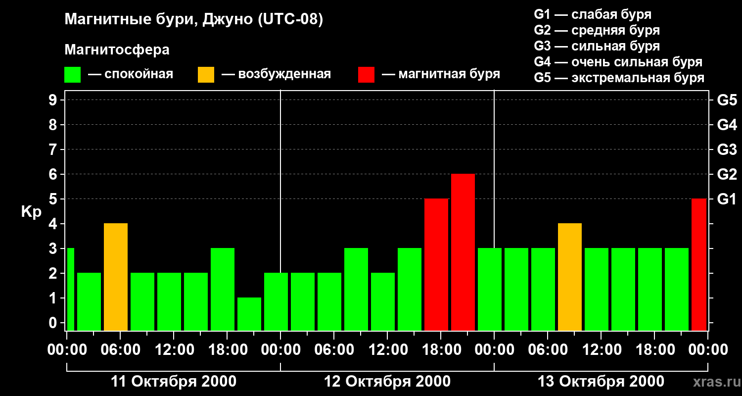 Магнитные бури Джуно 13 октября 2000 года