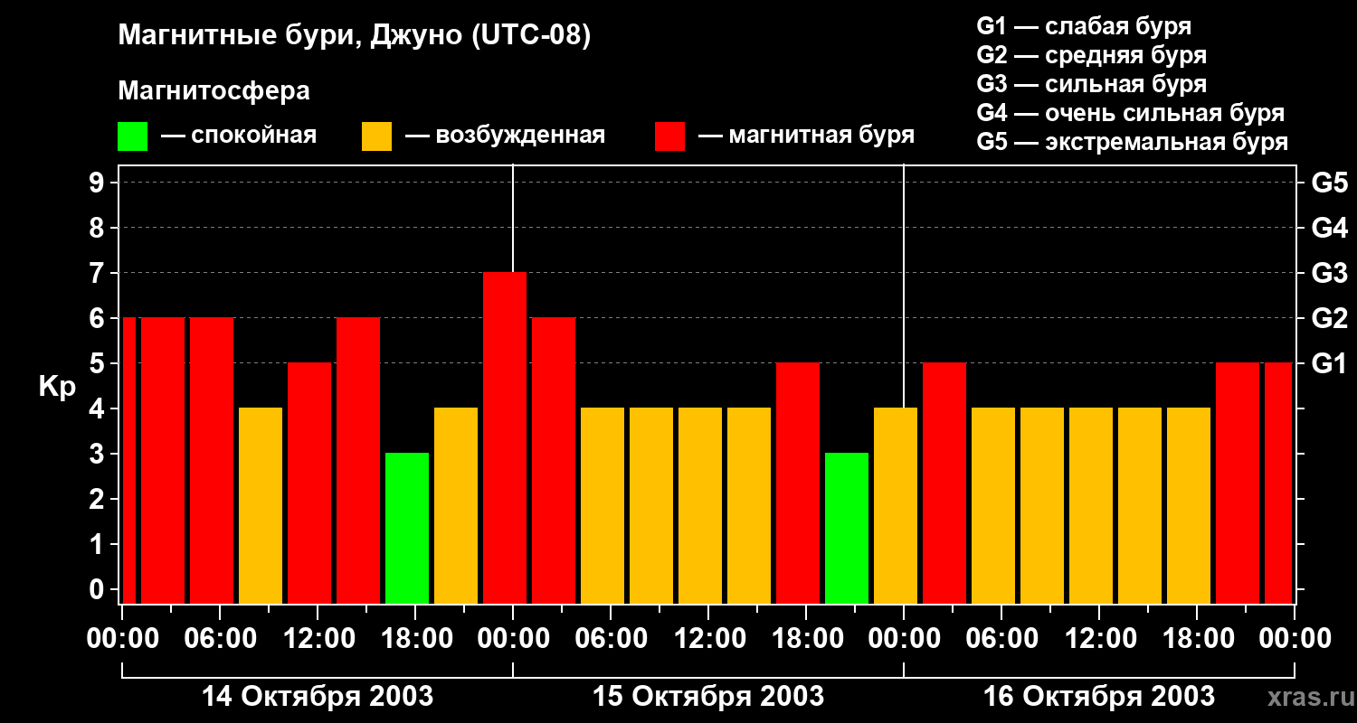 Магнитные бури Джуно 16 октября 2003 года