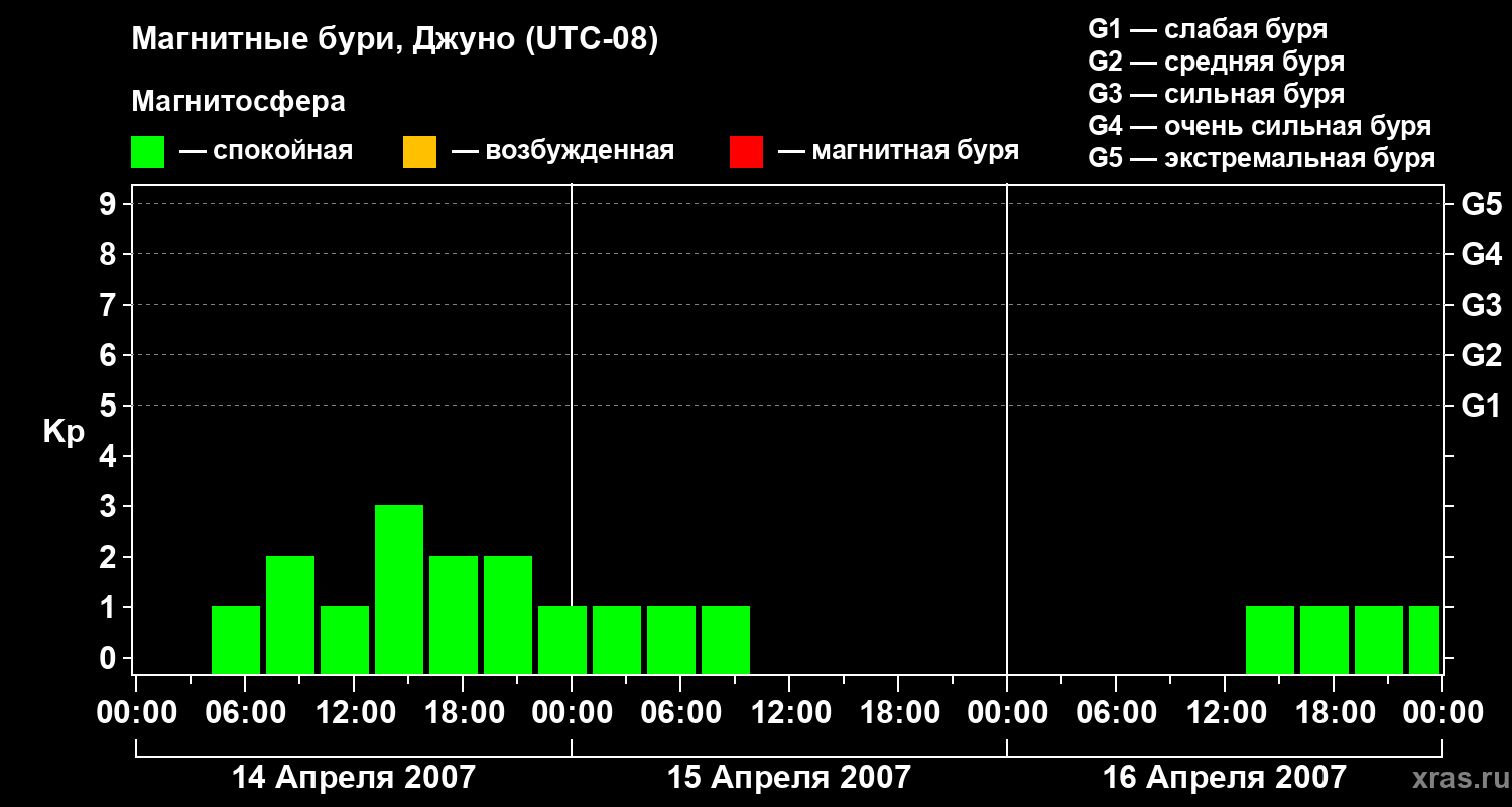 Магнитные бури Джуно 16 апреля 2007 года