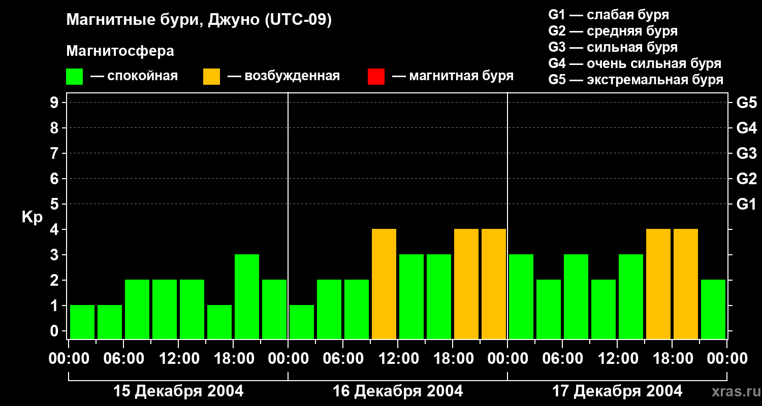 Магнитные бури Джуно 17 декабря 2004 года