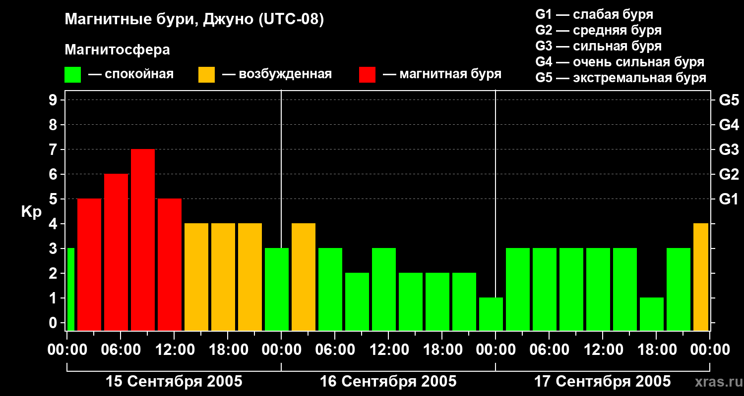 Магнитные бури Джуно 17 сентября 2005 года