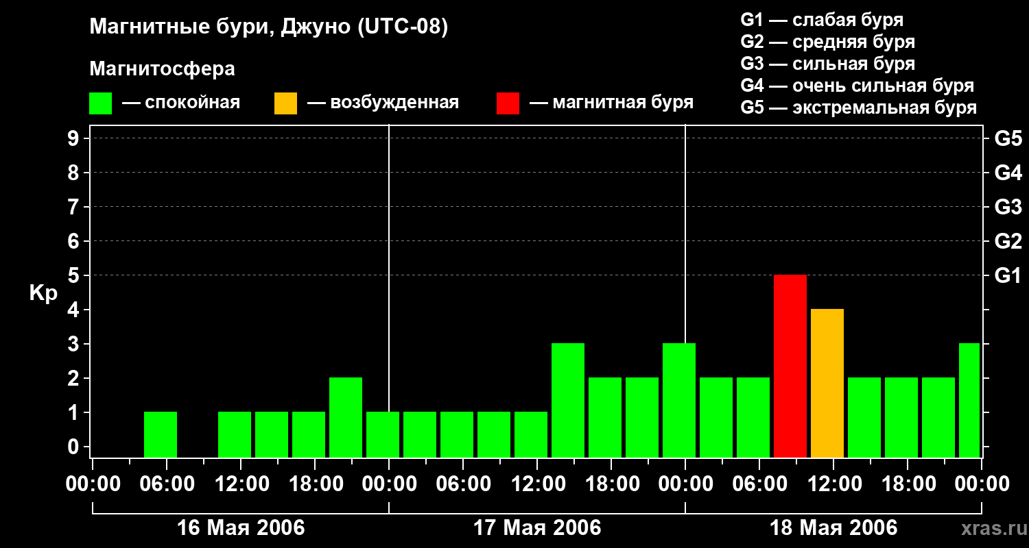 Магнитные бури Джуно 18 мая 2006 года