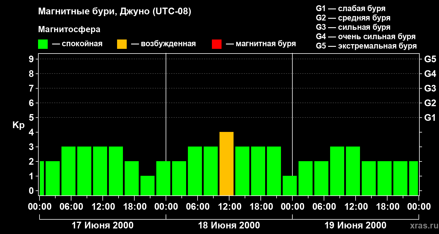Магнитные бури Джуно 19 июня 2000 года