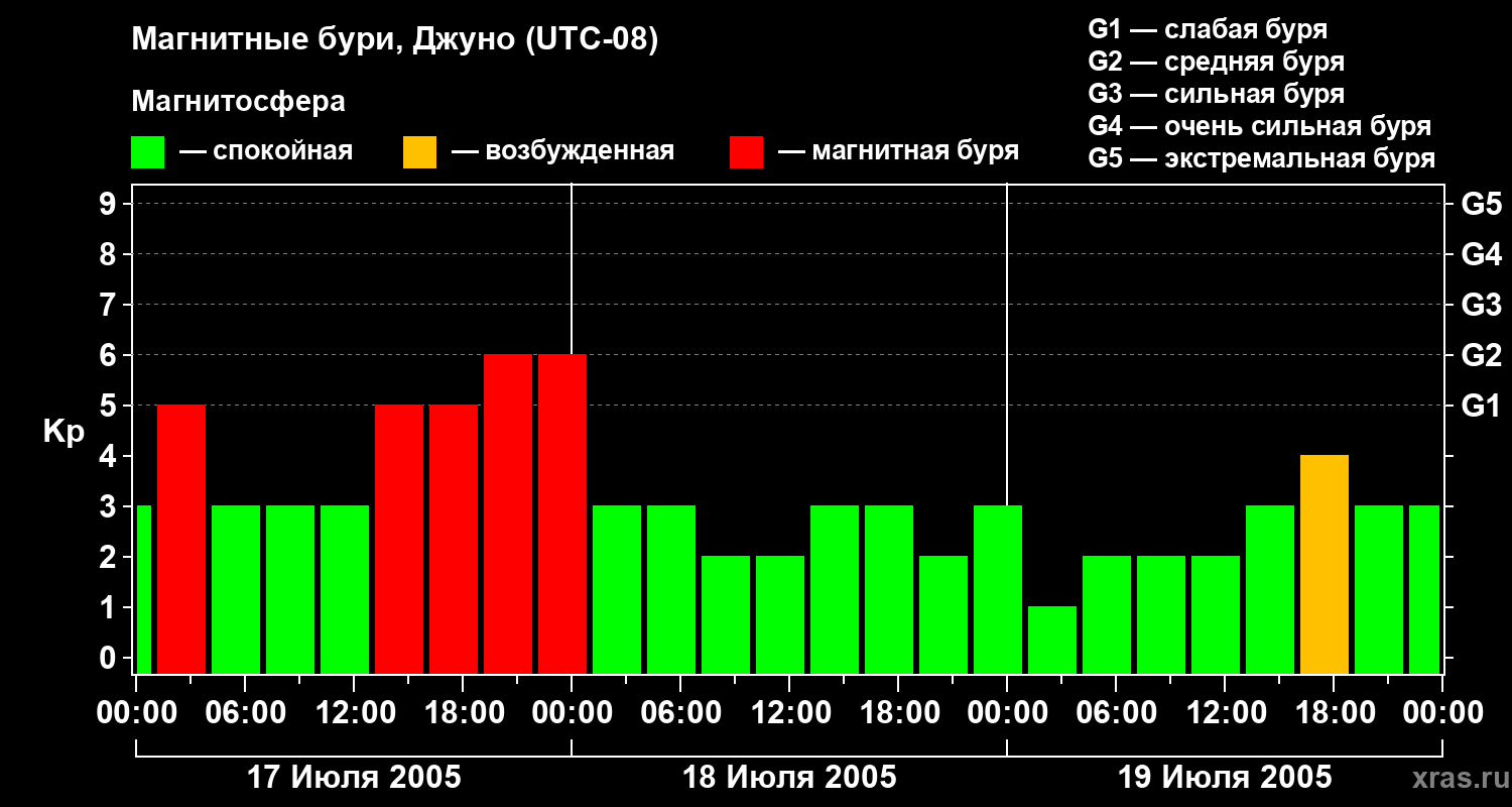 Магнитные бури Джуно 19 июля 2005 года