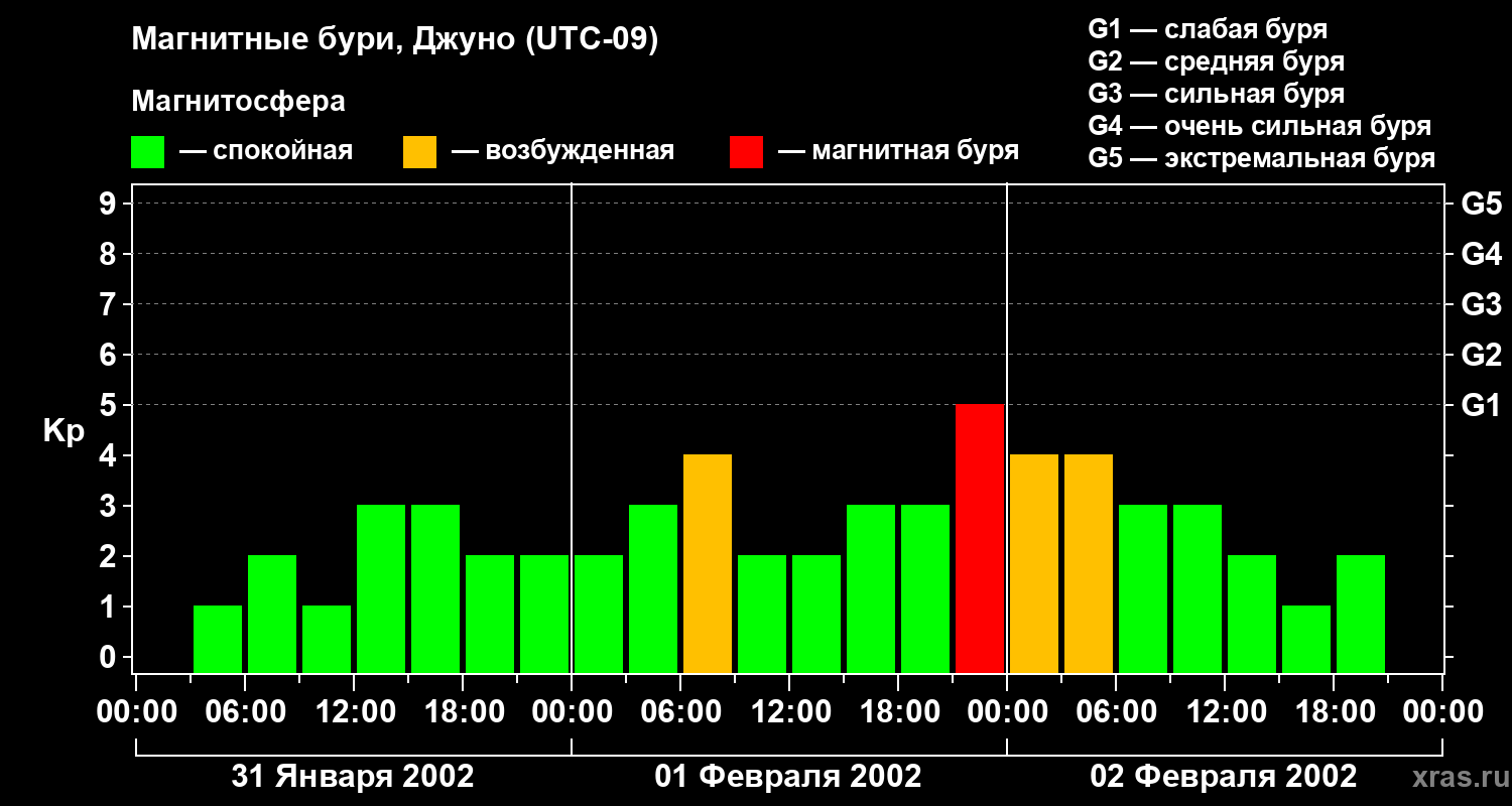 Магнитные бури Джуно 2 февраля 2002 года