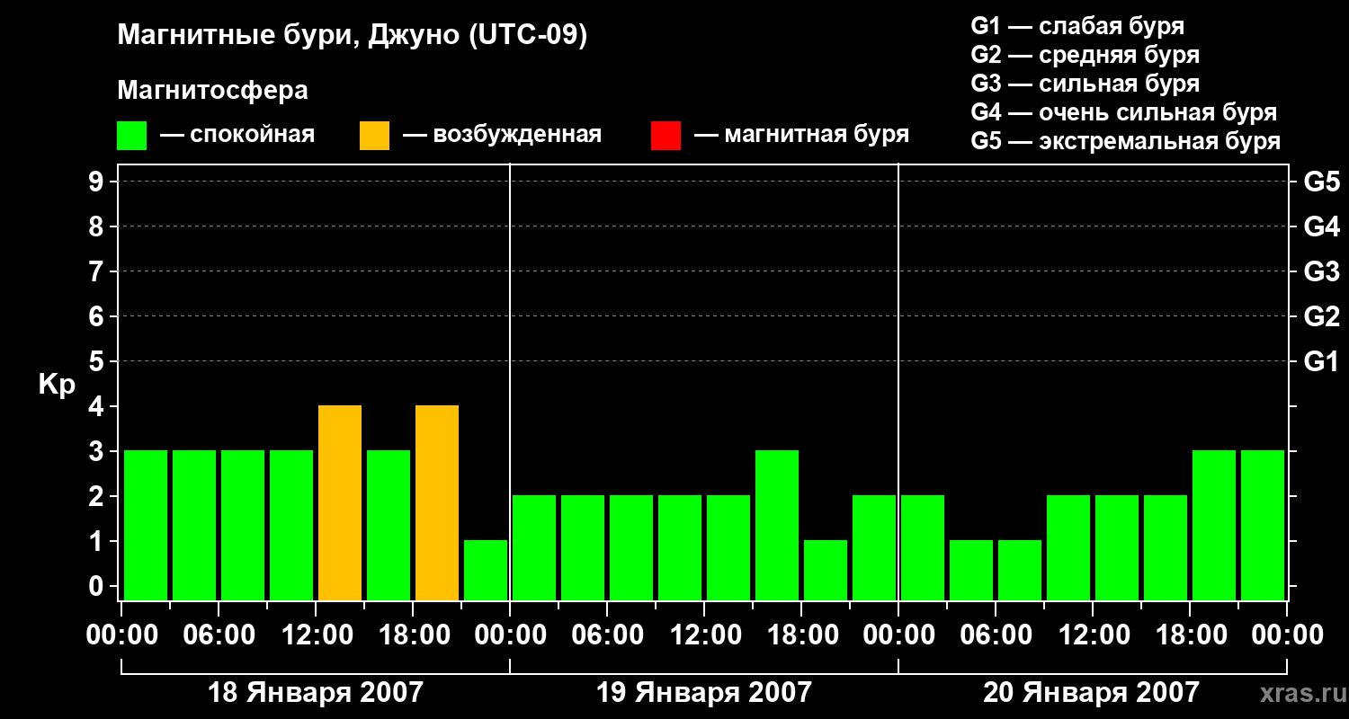 Изменения геомагнитного индекса Kp с 18 по 20 января 2007 года для средних широт