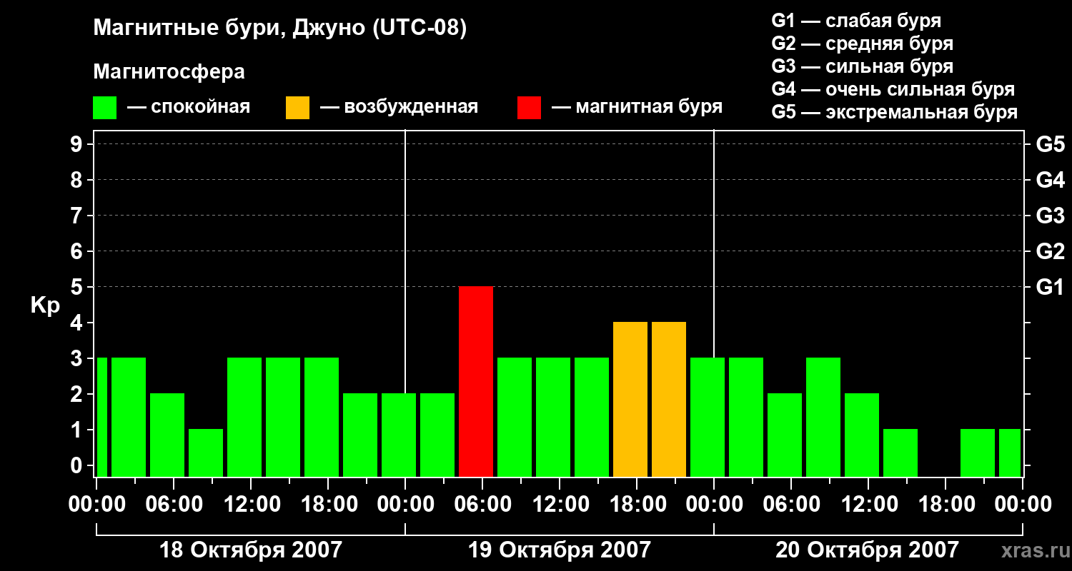 Магнитные бури Джуно 20 октября 2007 года