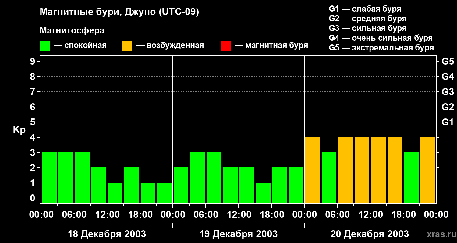 Магнитные бури Джуно 20 декабря 2003 года