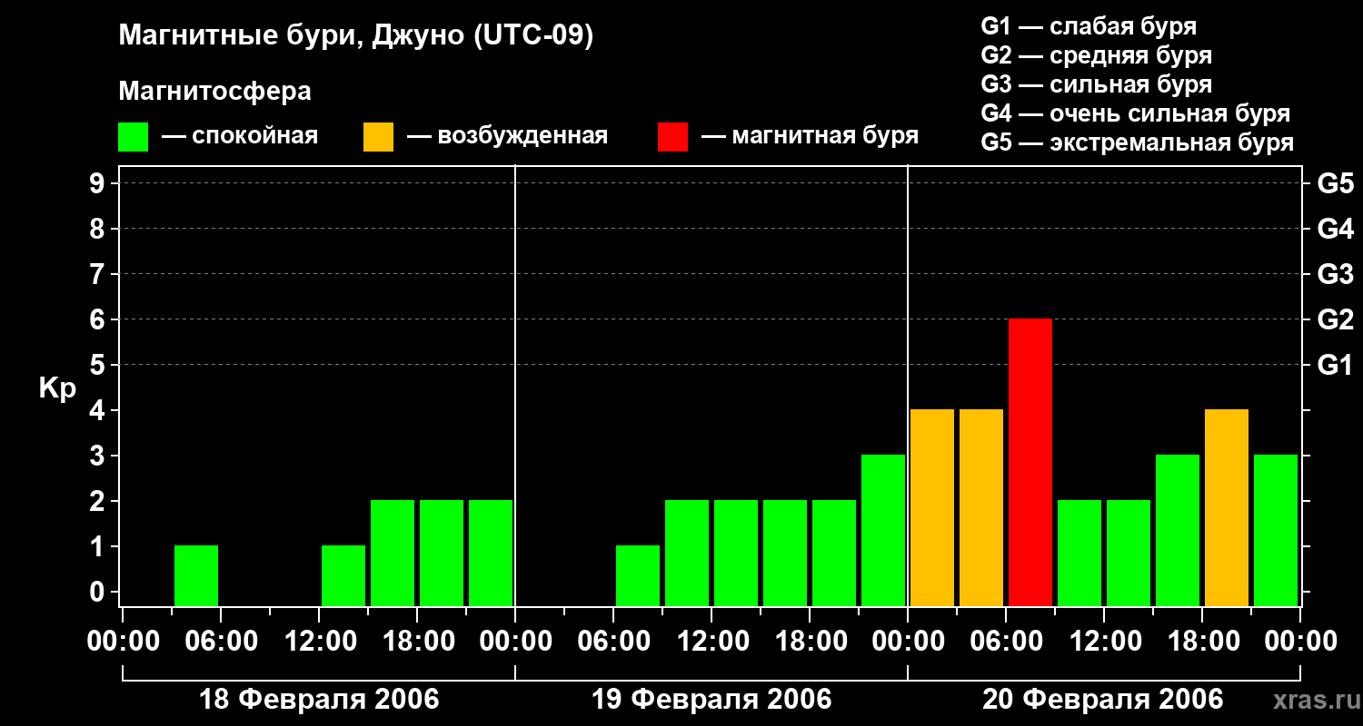 Магнитные бури Джуно 20 февраля 2006 года