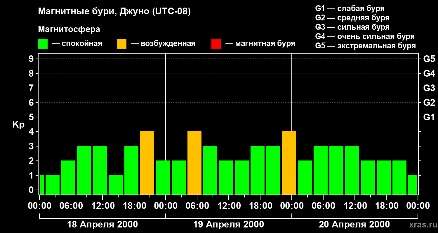 Магнитные бури Джуно 20 апреля 2000 года