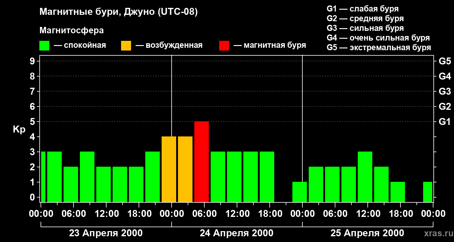 Магнитные бури Джуно 25 апреля 2000 года