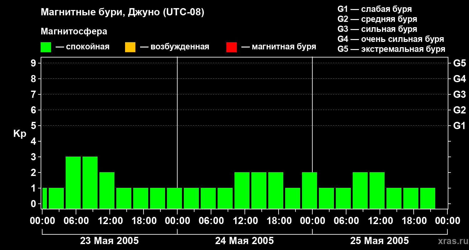 Магнитные бури Джуно 25 мая 2005 года