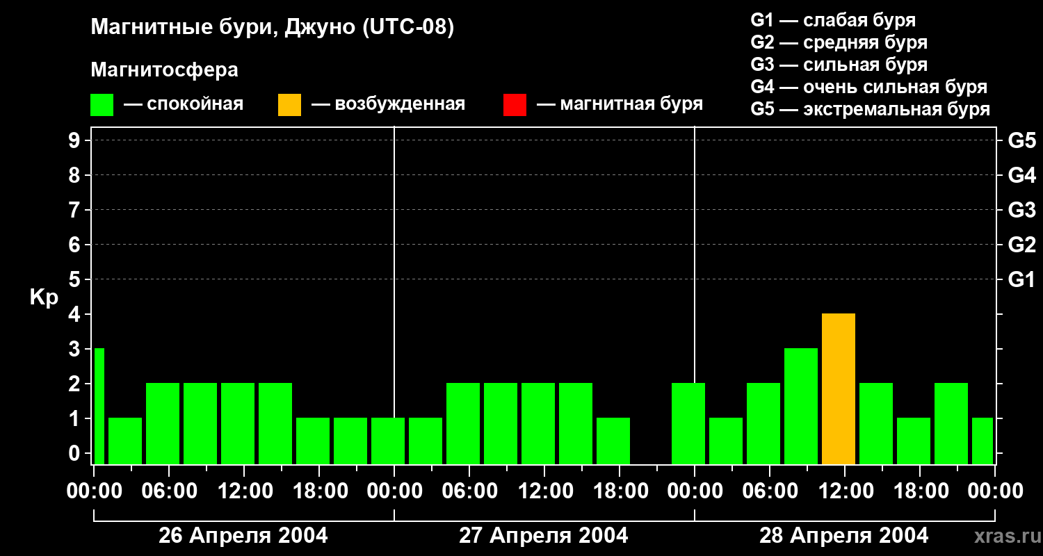 Магнитные бури Джуно 28 апреля 2004 года