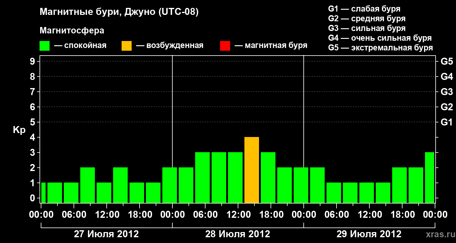 Магнитные бури Джуно 29 июля 2012 года