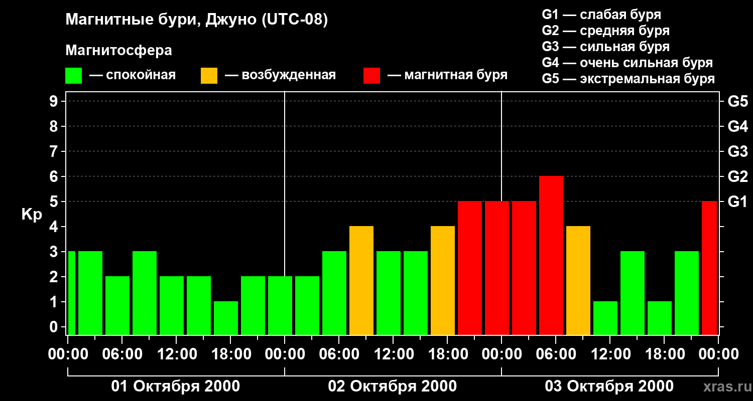 Магнитные бури Джуно 3 октября 2000 года