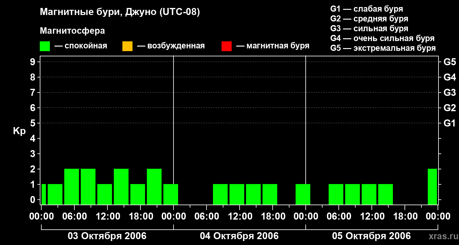 Изменения геомагнитного индекса Kp с 3 по 5 октября 2006 года для средних широт