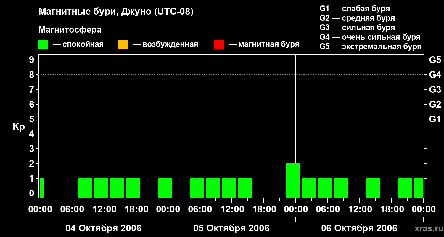 Изменения геомагнитного индекса Kp с 4 по 6 октября 2006 года для средних широт