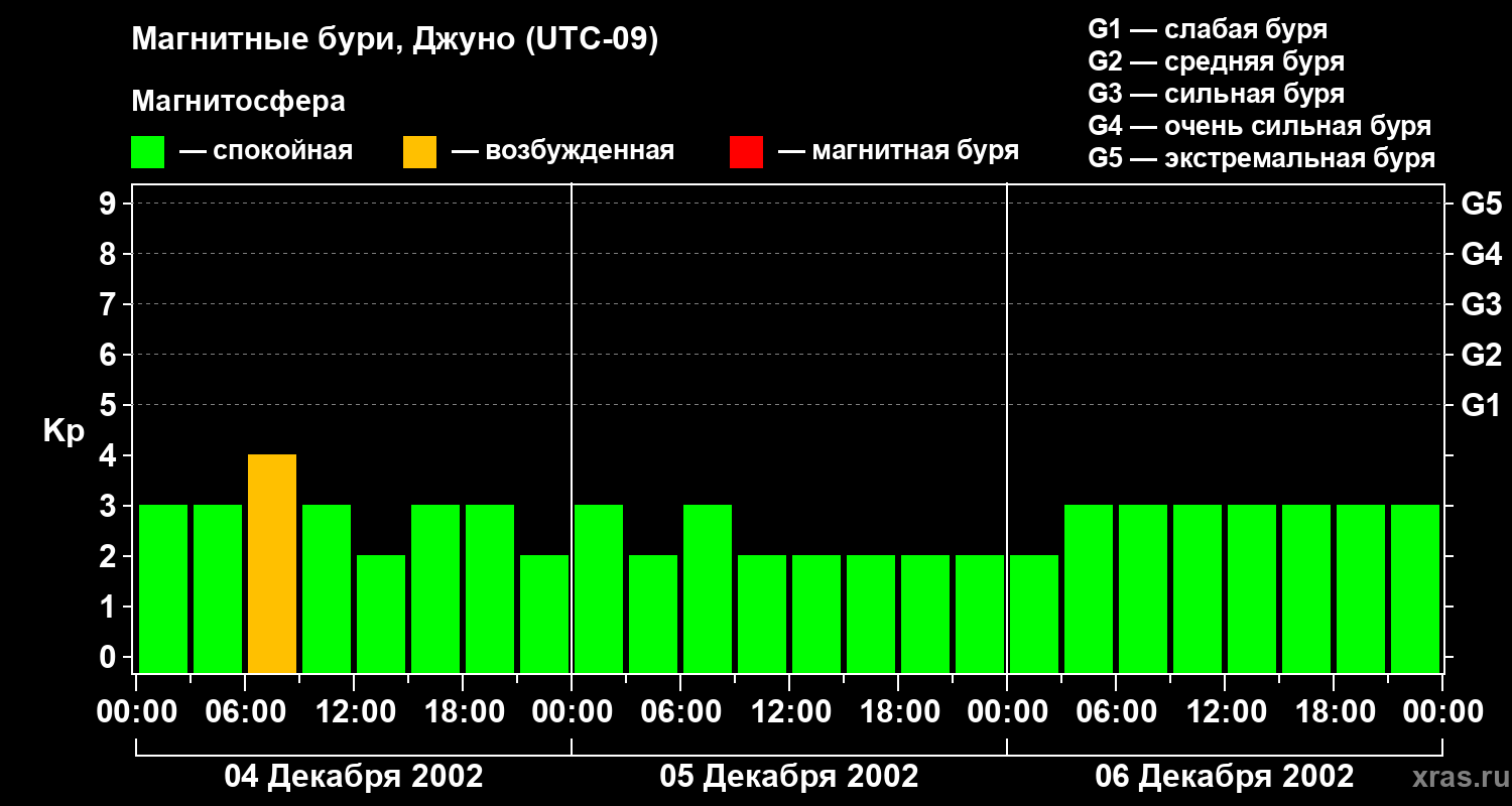 Изменения геомагнитного индекса Kp с 4 по 6 декабря 2002 года для средних широт