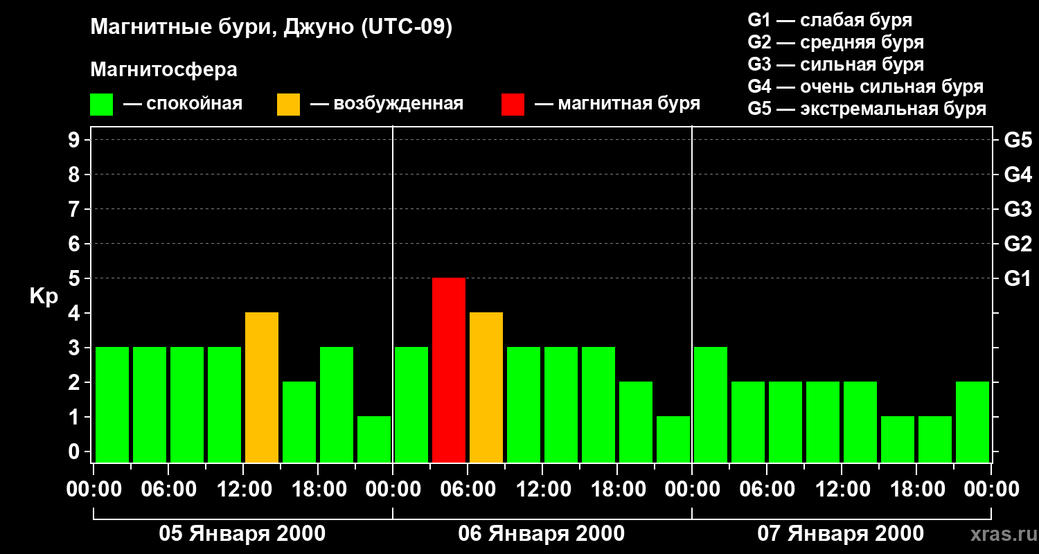 Магнитные бури Джуно 7 января 2000 года