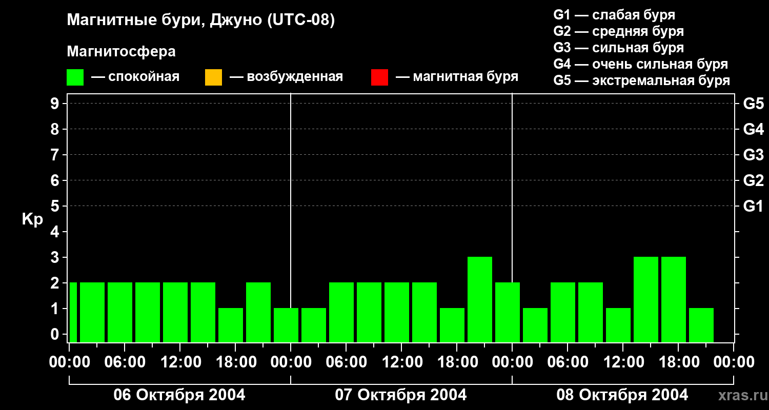 Магнитные бури Джуно 8 октября 2004 года