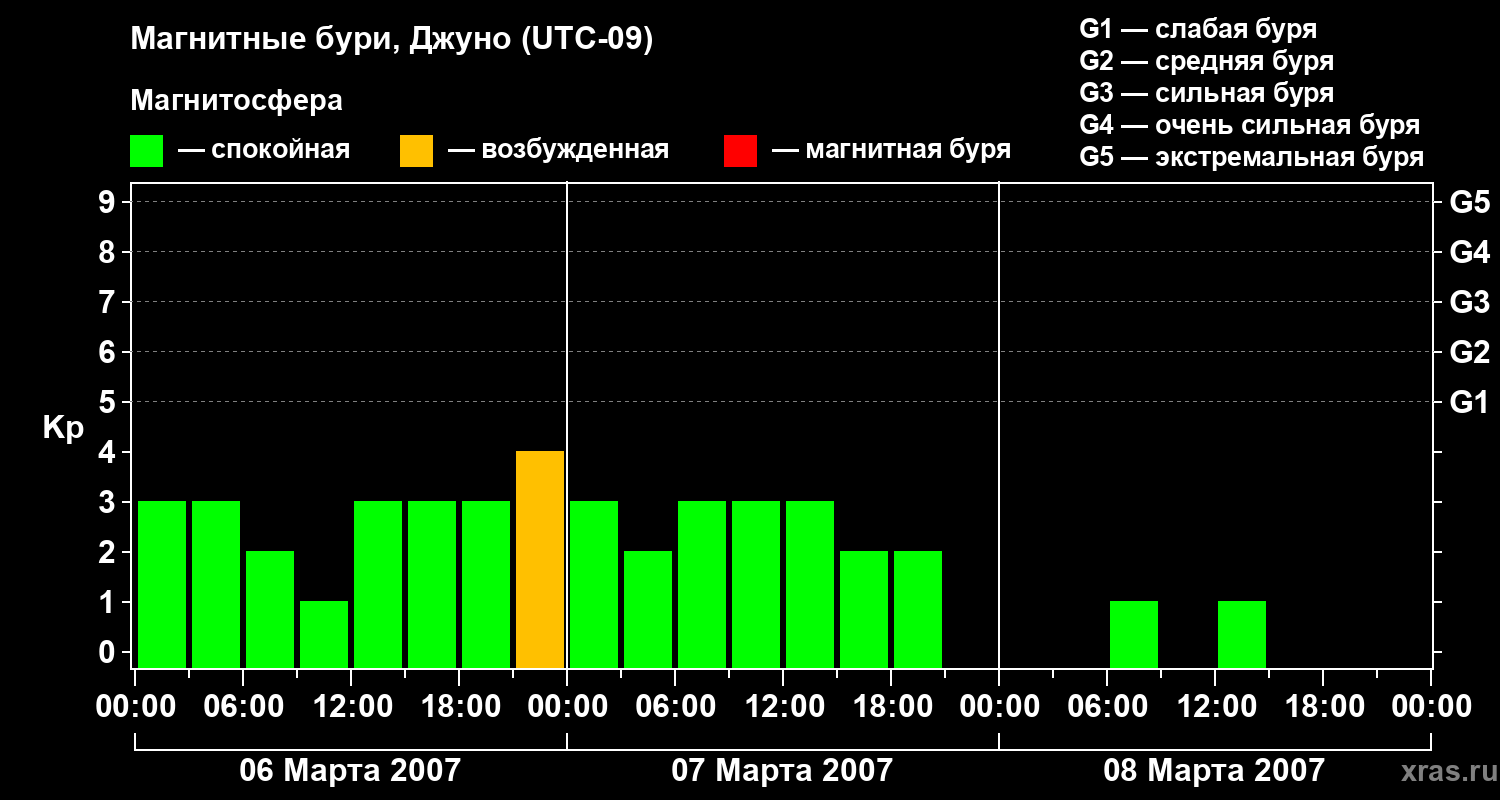 Магнитные бури Джуно 8 марта 2007 года
