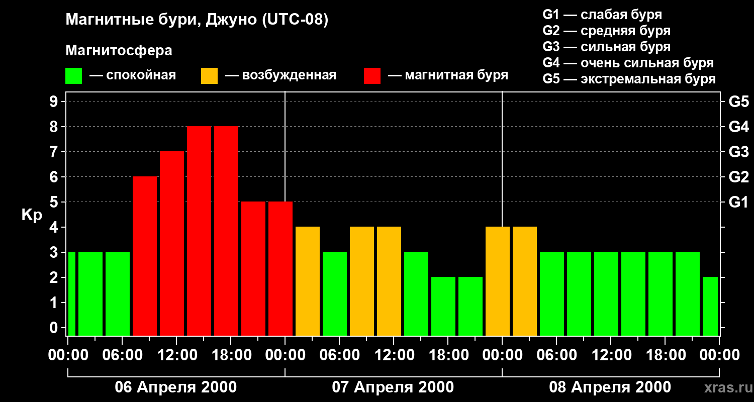 Магнитные бури Джуно — 8 апреля 2000 года