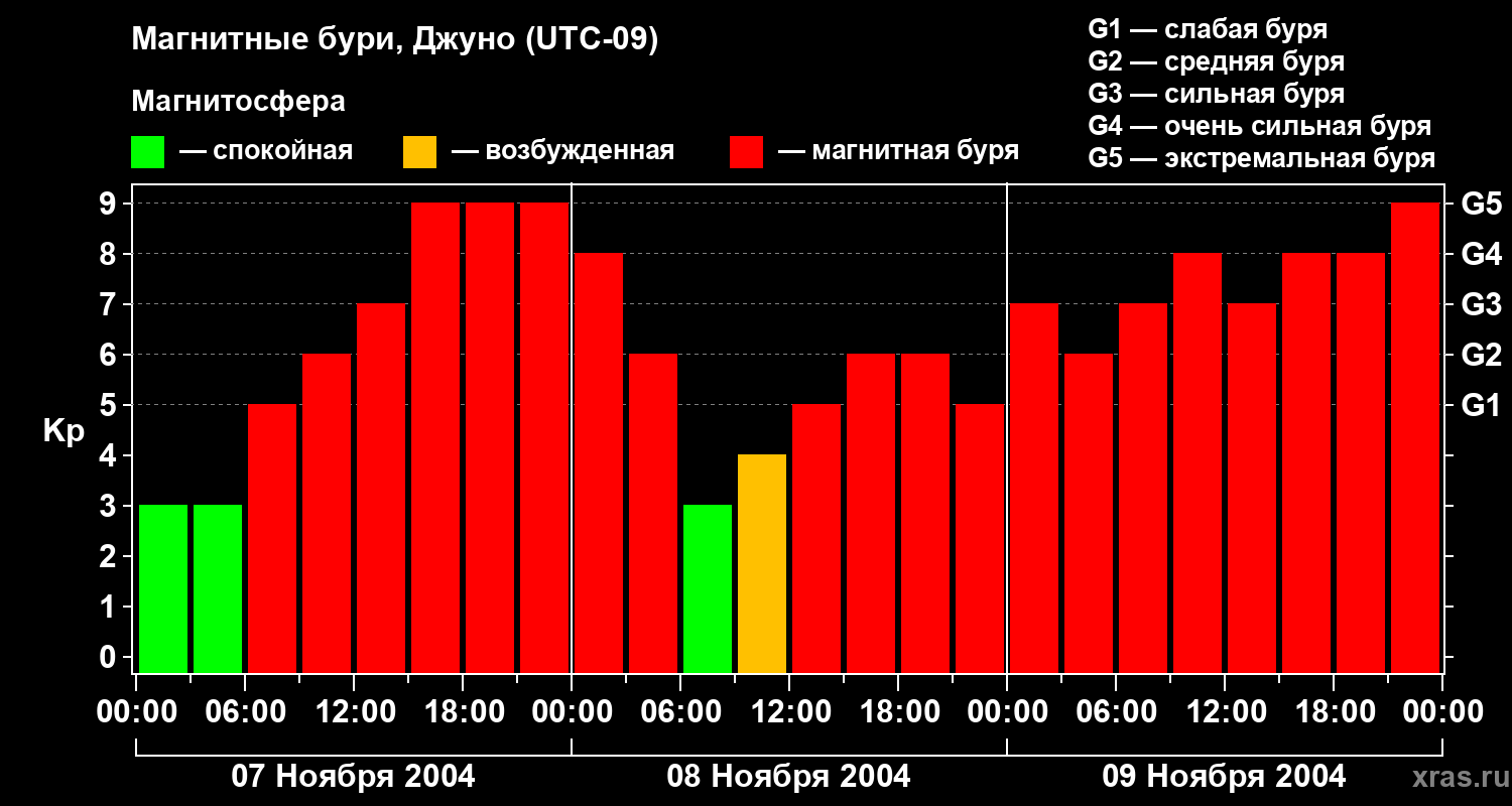 Магнитные бури Джуно — 9 ноября 2004 года