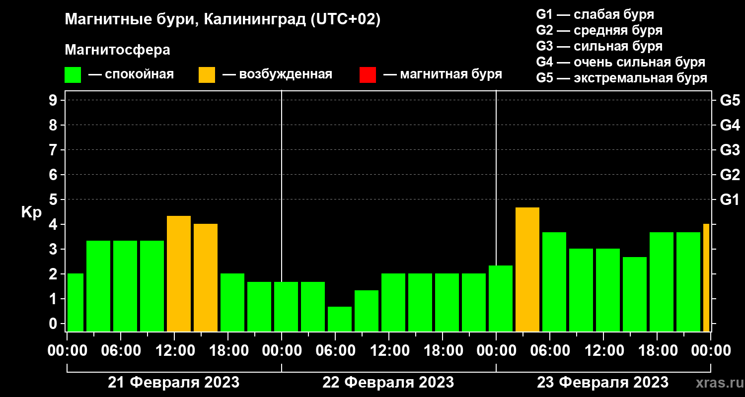 Магнитные бури в Калининграде 23 февраля 2023 года
