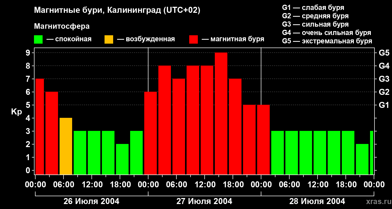 Магнитные бури в Калининграде — 28 июля 2004 года