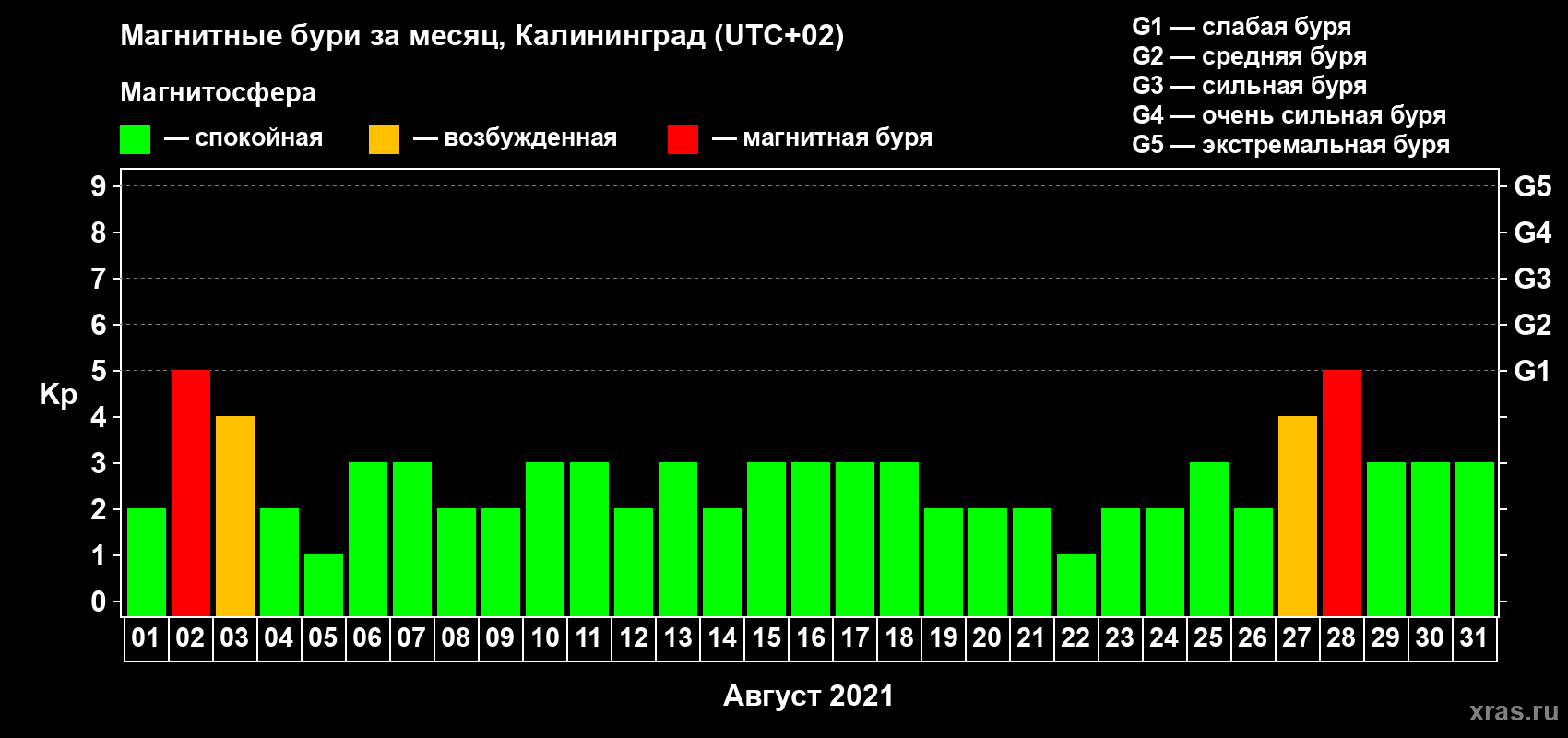 Магнитные бури в Калининграде в августе 2021 года