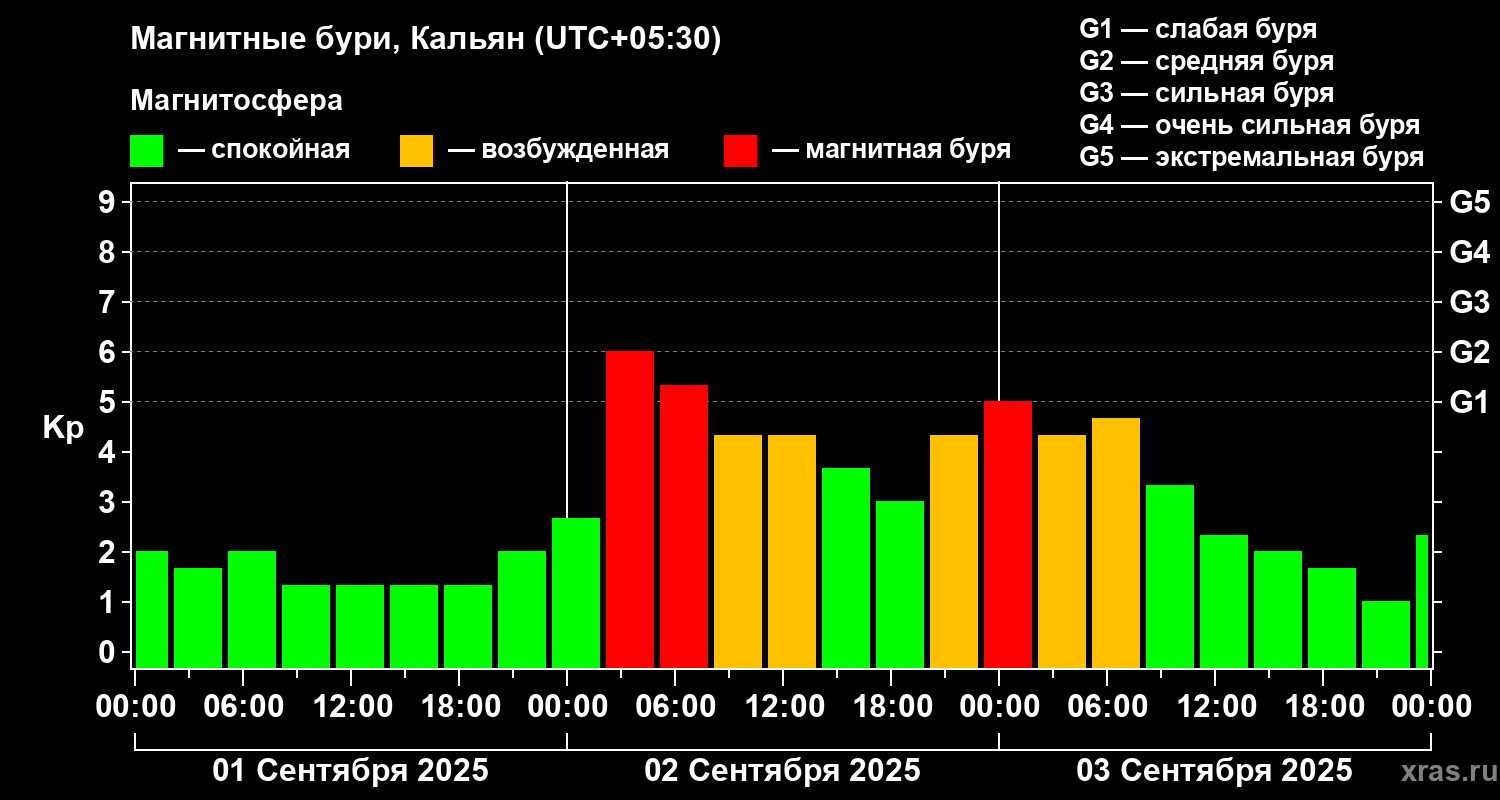 Магнитные бури в Кальяне 3 сентября 2025 года