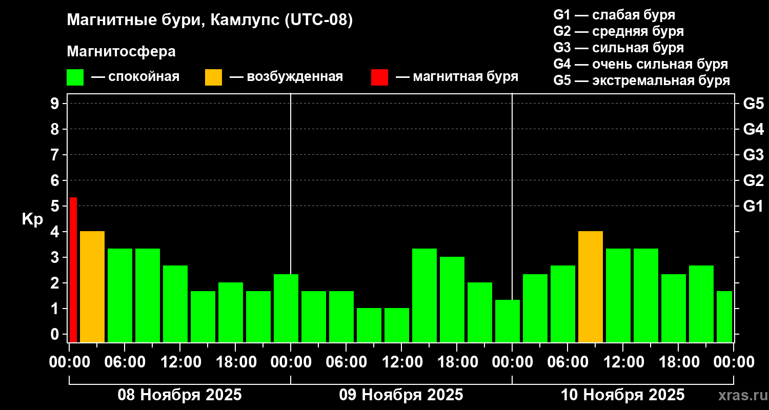 Магнитные бури в Камлупсе — 10 ноября 2025 года