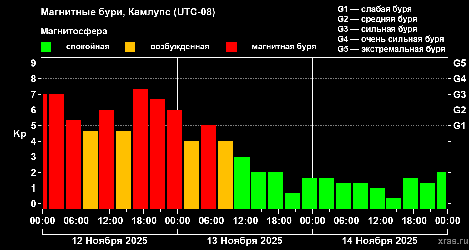 Магнитные бури в Камлупсе 14 ноября 2025 года