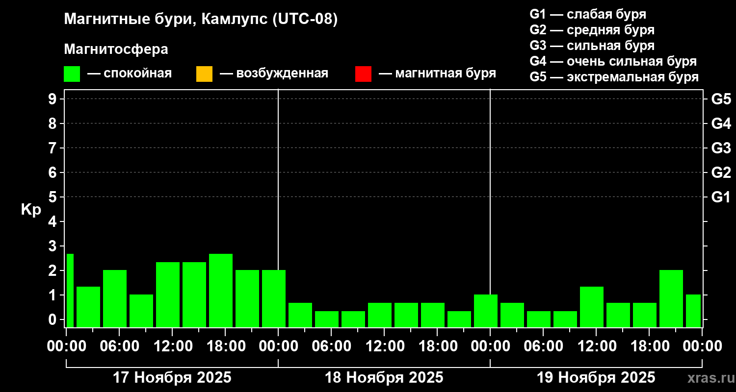 Магнитные бури в Камлупсе — 19 ноября 2025 года