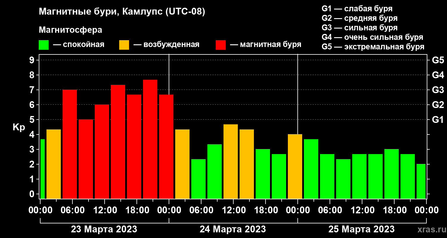 Магнитные бури в Камлупсе 25 марта 2023 года